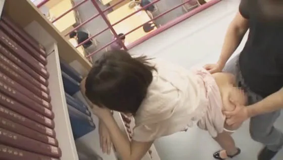 図書館の物陰で痴漢の餌食になった美少女。強制的にマンコを愛撫され潮を噴く!チンポのガン突きに必死に声を押し殺す。