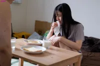今回はなんと、家出妻が中年男に拾われて一日目の朝から映像が記録されていた。行くあてのない家出妻は前日に中年男とアプリで知り合い、かなりお酒を飲んだようで自宅だと思い目を覚ました女はここが何処か、この男は誰か理解できず「誰ですか?」とかなり動揺していたが、徐々に自分が家出をしてこの男に拾われた現実を思い出し呆然とする…この日から女の生活が一変する、異常に性欲の強い男は日に何度も女の身体を求め当たり前のように中出しをする、膣内には絶えず男の精液が…そんな生活を過ごしてるうちに洗濯や家事をする様になった女は、中年男に依存するようになり、気が付けば離れた家族の事も忘れ、あんなに嫌だった男とのSEXの沼にどっぷりハマっていく…。