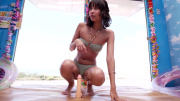 ビーチで弾ける笑顔がまぶしいあすかちゃん(20歳)が、マジックミラー号に初乗車! ムチムチのデカ尻と、砂まみれの水着姿が眩しい素人娘が、禁断の「1cm1万円ギリギリディルドチャレンジ」に挑戦!頬を赤らめながら、賞金欲しさに水着をずらしてヌルヌルのディルドにまたがっちゃう! 入口で焦らしていたはずが、快感に負けて自ら奥までズッポリ挿入!彼氏以外の男に挿入され、子宮口をほじくられながら「イクッ! イクッ!」と連続絶頂! 正常位、バック、騎乗位で揺れるデカ尻!