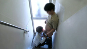 この日もチ○ポをぶち込まれるためだけに呼び出されるとホイホイやってきて、人影が行き交う雑居ビル入り口のすりガラス越しにフェラを命じられます。
